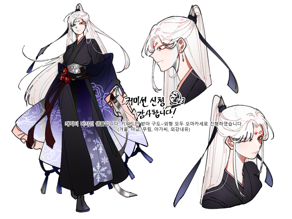(외모의 경우 이미지로 정리해주시는 쪽이 확인이 용이하며 부득이하게 자료제공이 어려워 글로만 서술이 가능하신 경우는 키워드나 단문으로 간략하게 기재해주세요. 너무 긴 부연설명/묘사는 오히려 제가 특징이나 요청사항을 정확히 이해하는데 어렵습니다.)